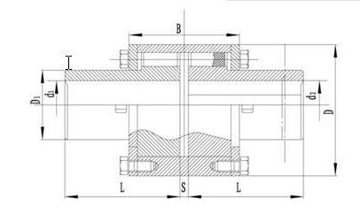 | 型號 | 公稱扭矩 N.m | 許用 轉速 rpm | 孔徑直徑mm d1、d2 | 軸孔長度mm | D | S | B | 許用補償量 | 轉動 慣量 N.m2 |